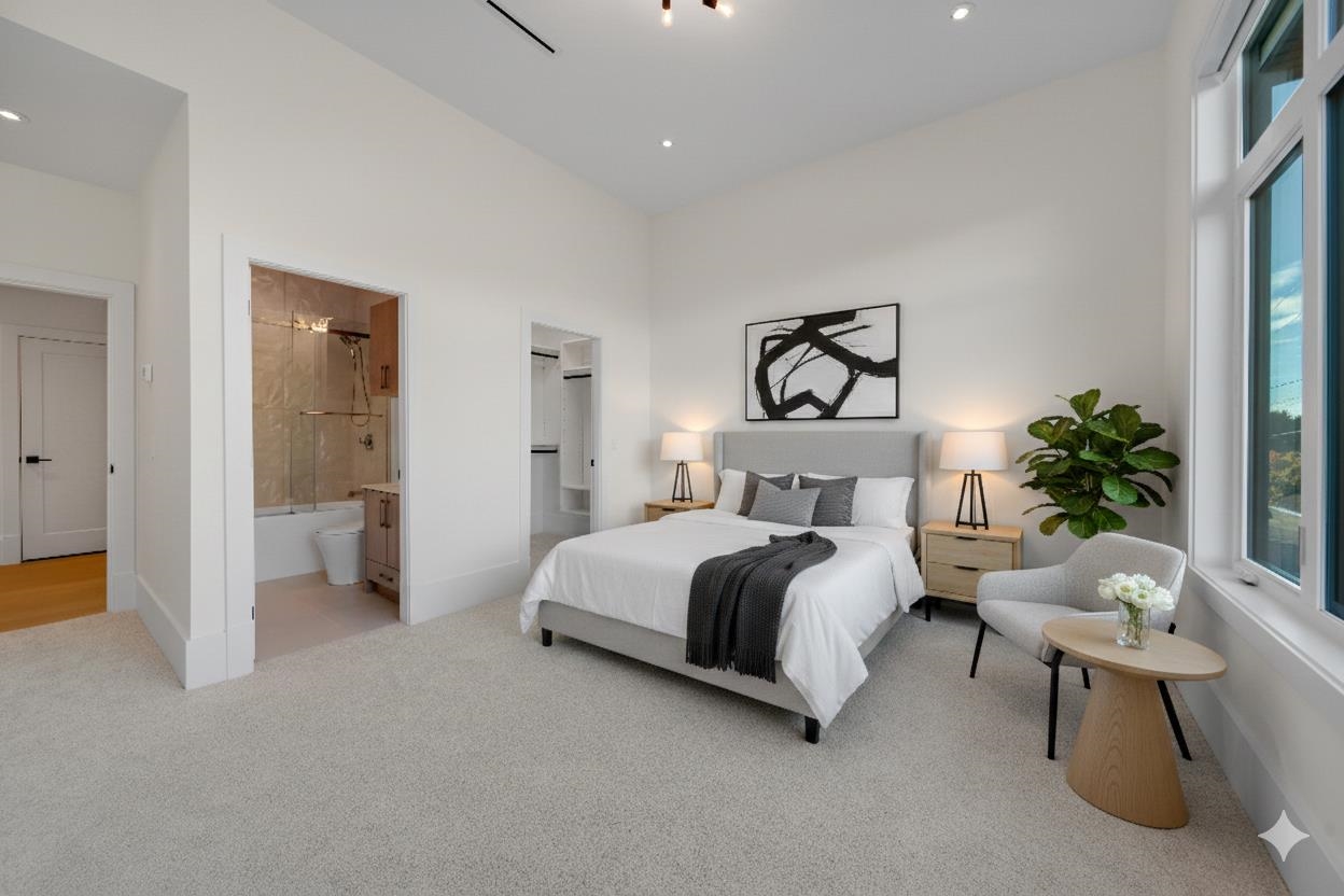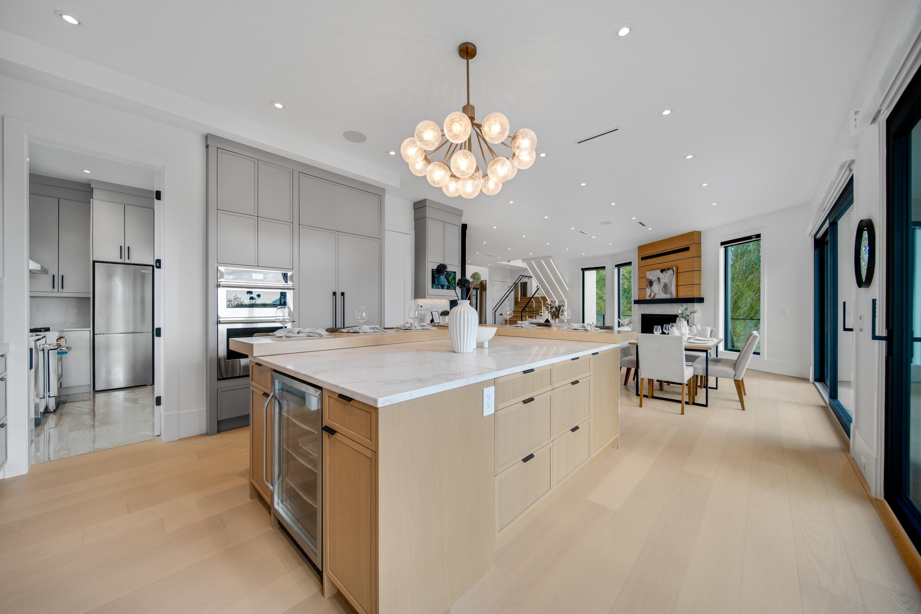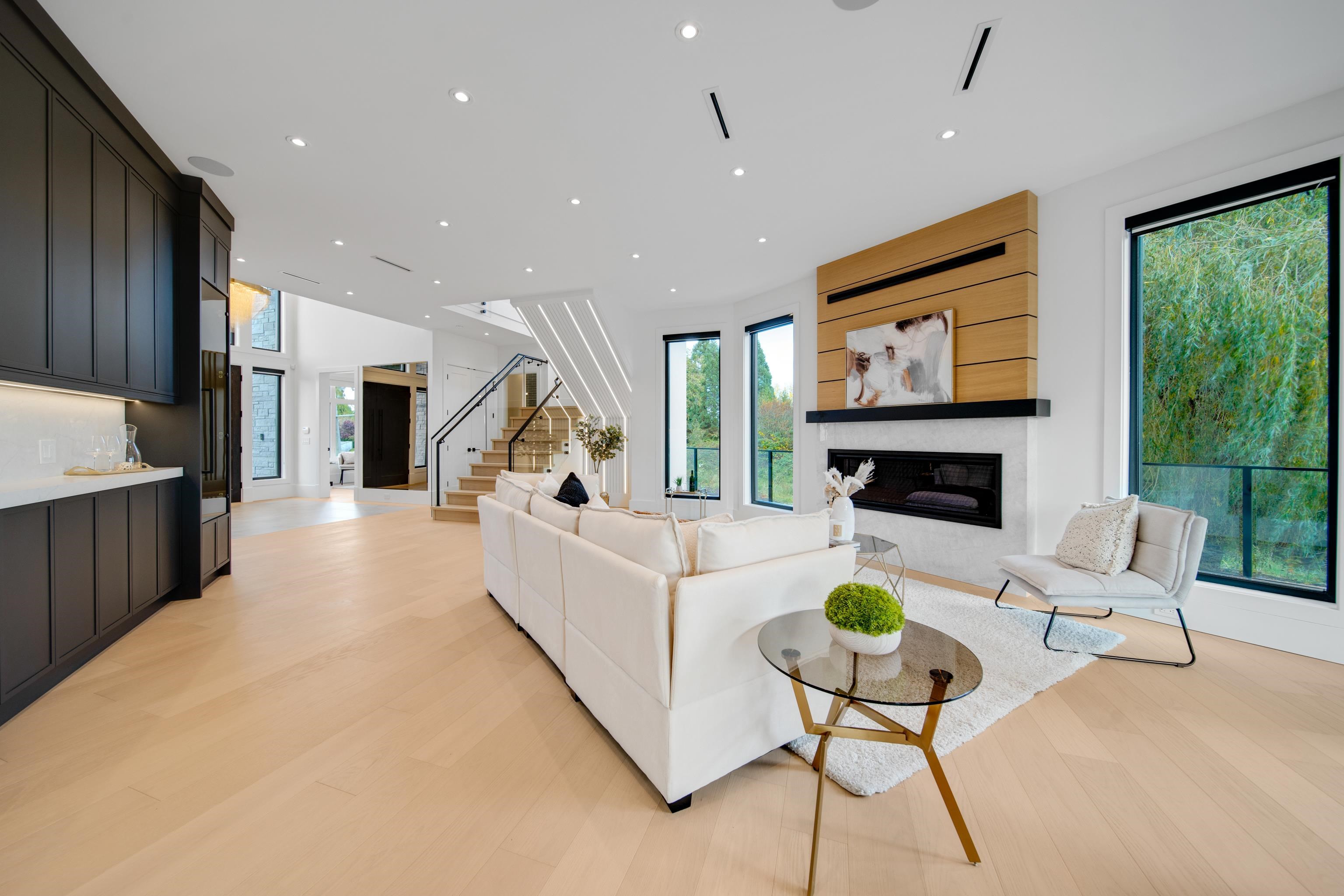 Welcome to 9500 Finn Road, offering modern luxury living in the coveted Gilmore subarea. This exceptional custom-built home features 4,183 sq. ft. of refined living space on a private 13,695 sq. ft. lot, designed for both comfort + entertaining. Enjoy SW exposure from the rear, filling the home w natural light & serene views over the Woodwards ravine. Luxury finishes include oversized windows with power shades, European oak flooring, designer lighting, a custom glass staircase, real oak cabinetry & premium ...