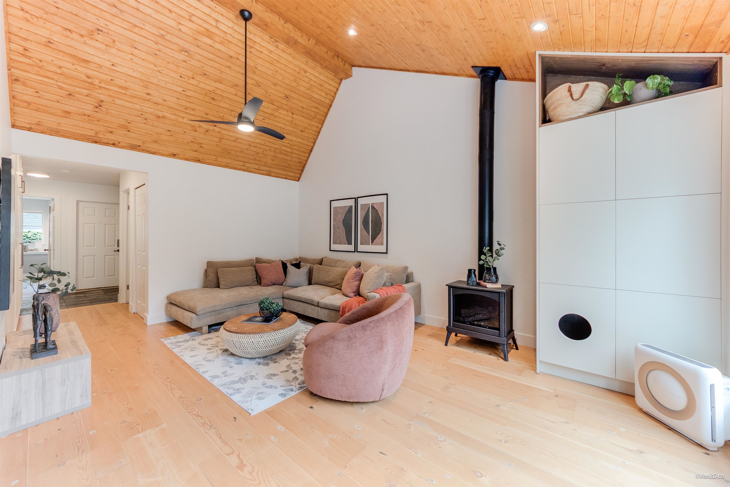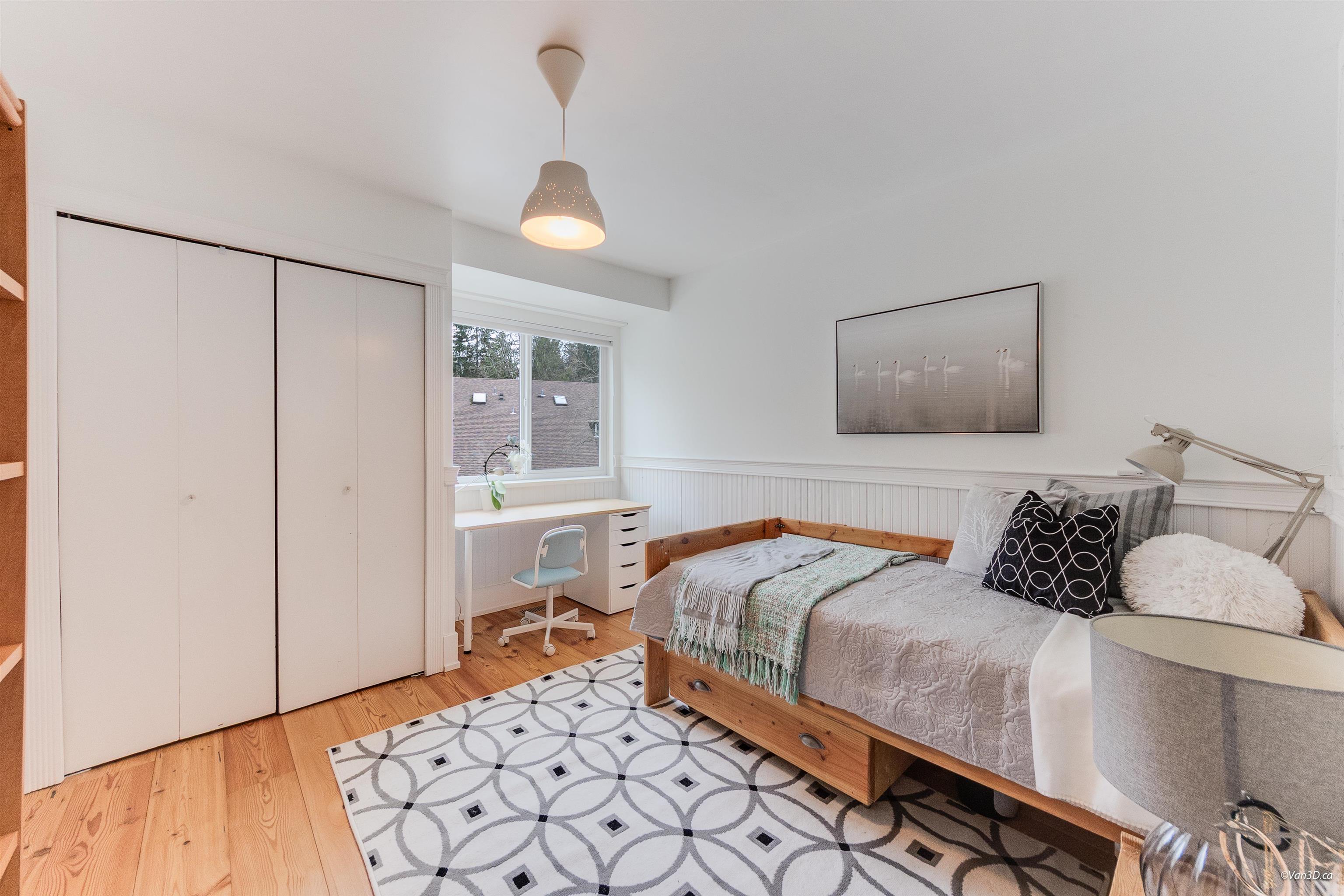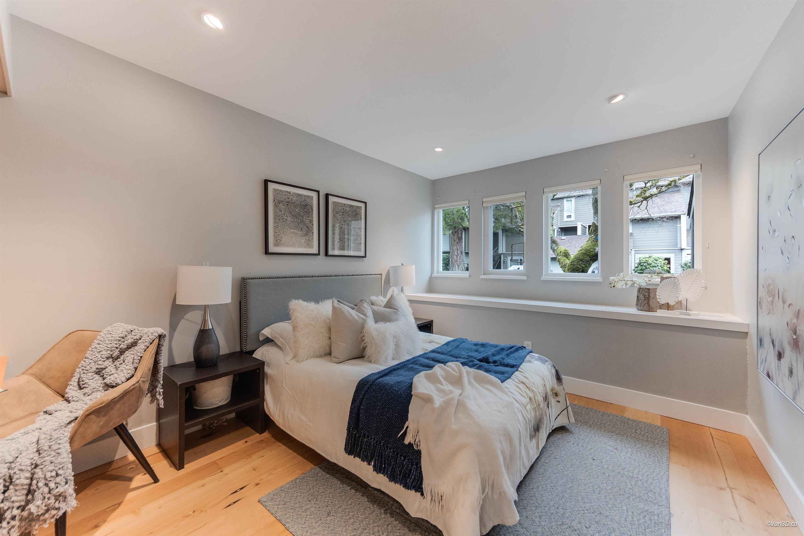 YOUR SEARCH STOPS HERE! This end-unit, duplex-style West Coast townhome truly has it all: A/C, EV charger, proactive strata with renewed building envelope, generous outdoor space, timeless renovations, loads of storage and even a workshop. Featuring 4-5 bedrooms and 2.5 baths, it showcases pine panel ceilings, fir hardwood in the living area, custom built-ins and expansive windows that flood the home with natural light. The versatile main level offers a HUGE office/bedroom and full bath. Upstairs has 3 bedr...