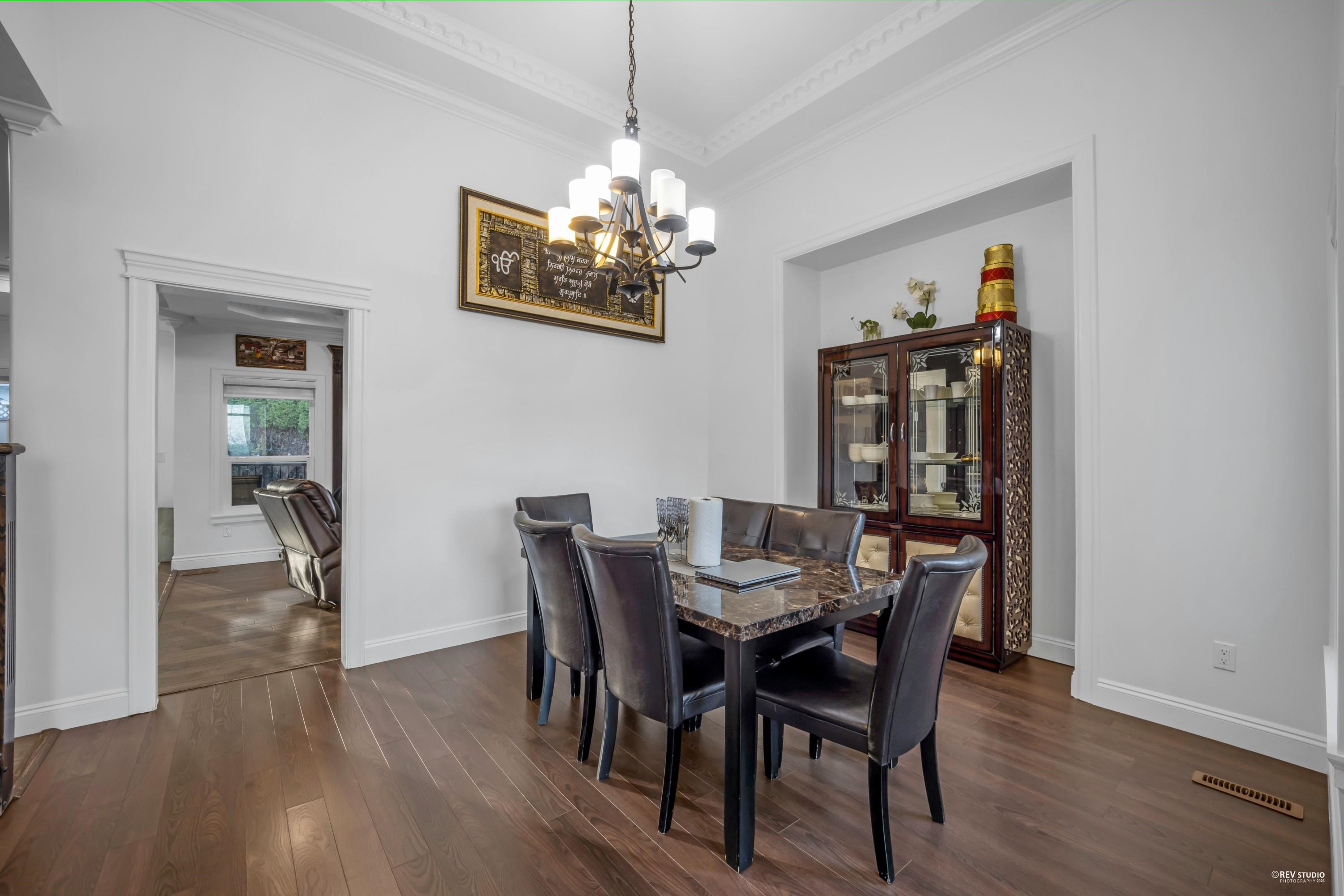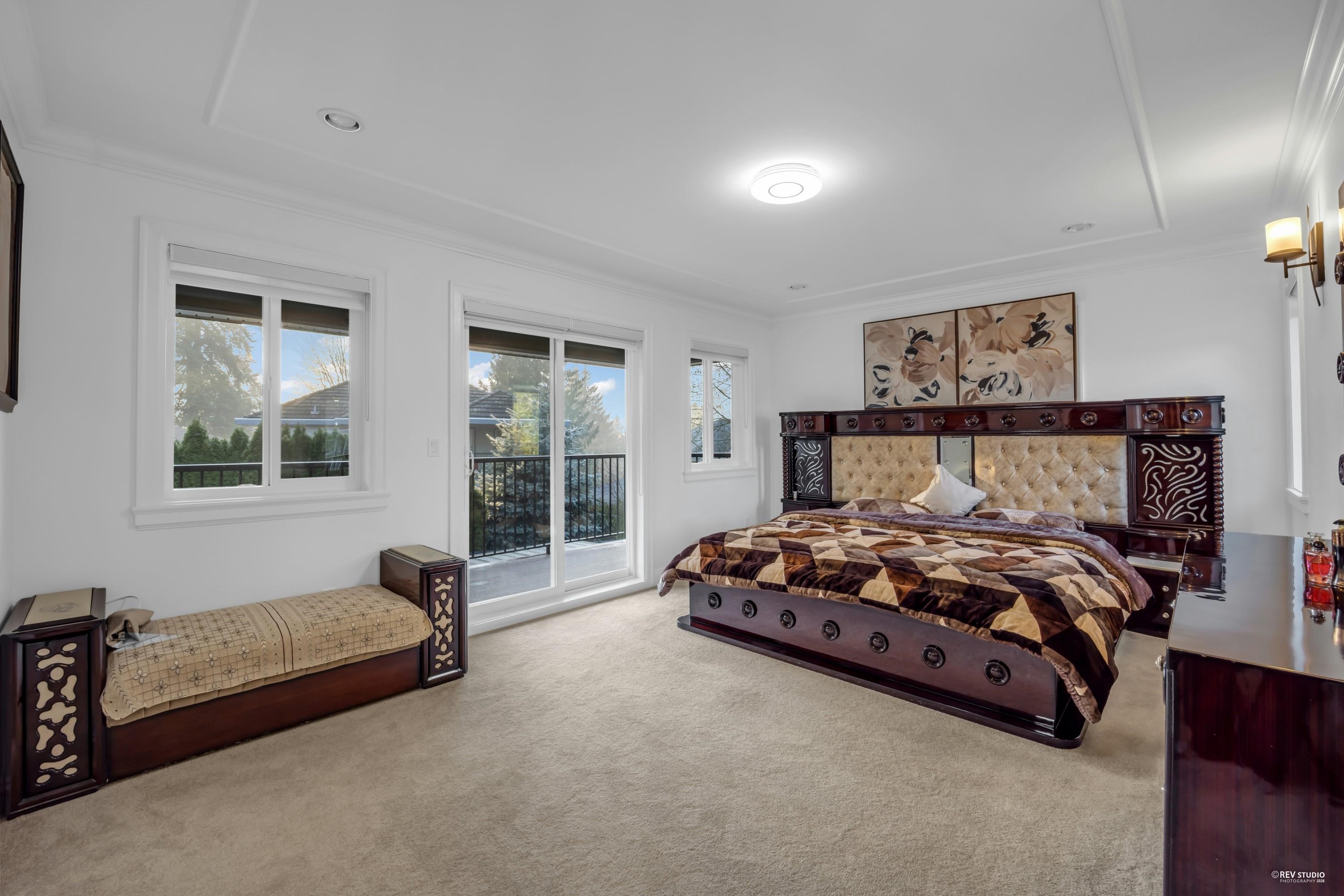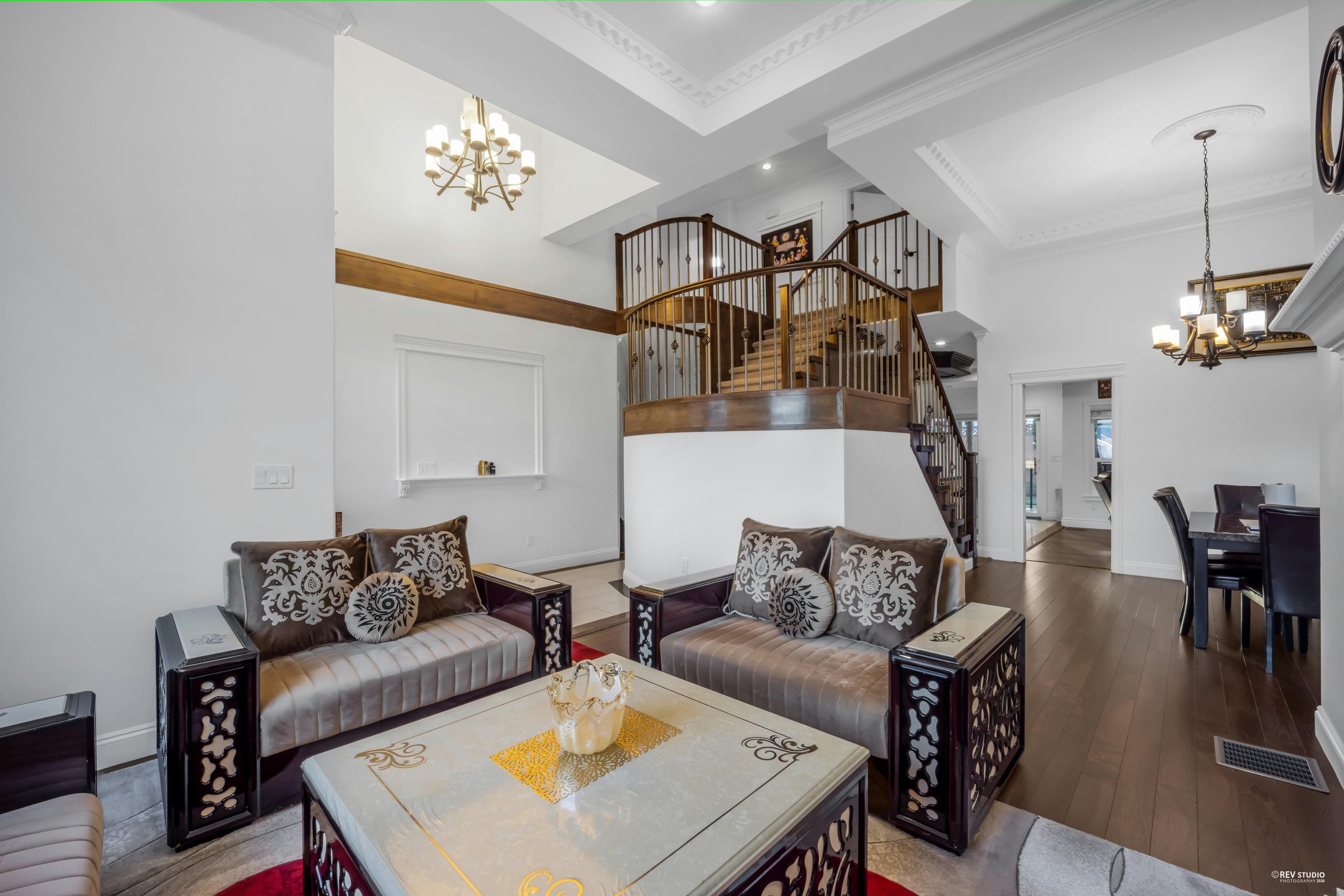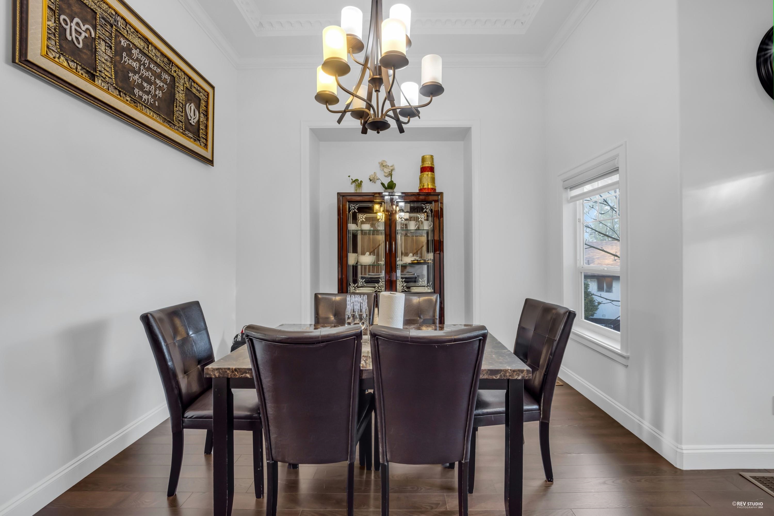 Beautifully kept custom-built home with breathtaking views of the Fraser River and Downtown New Westminster from the top floor. Situated on an approx. 6,029 sq. ft. lot, this home offers 8 bedrooms and 6 bathrooms with quality finishes throughout, including central air conditioning and granite countertops. The main floor features a theatre room with wet bar, bedroom, powder room, spice kitchen, and a covered patio with views. Upstairs boasts 4 spacious bedrooms, including a luxurious primary suite with ensu...