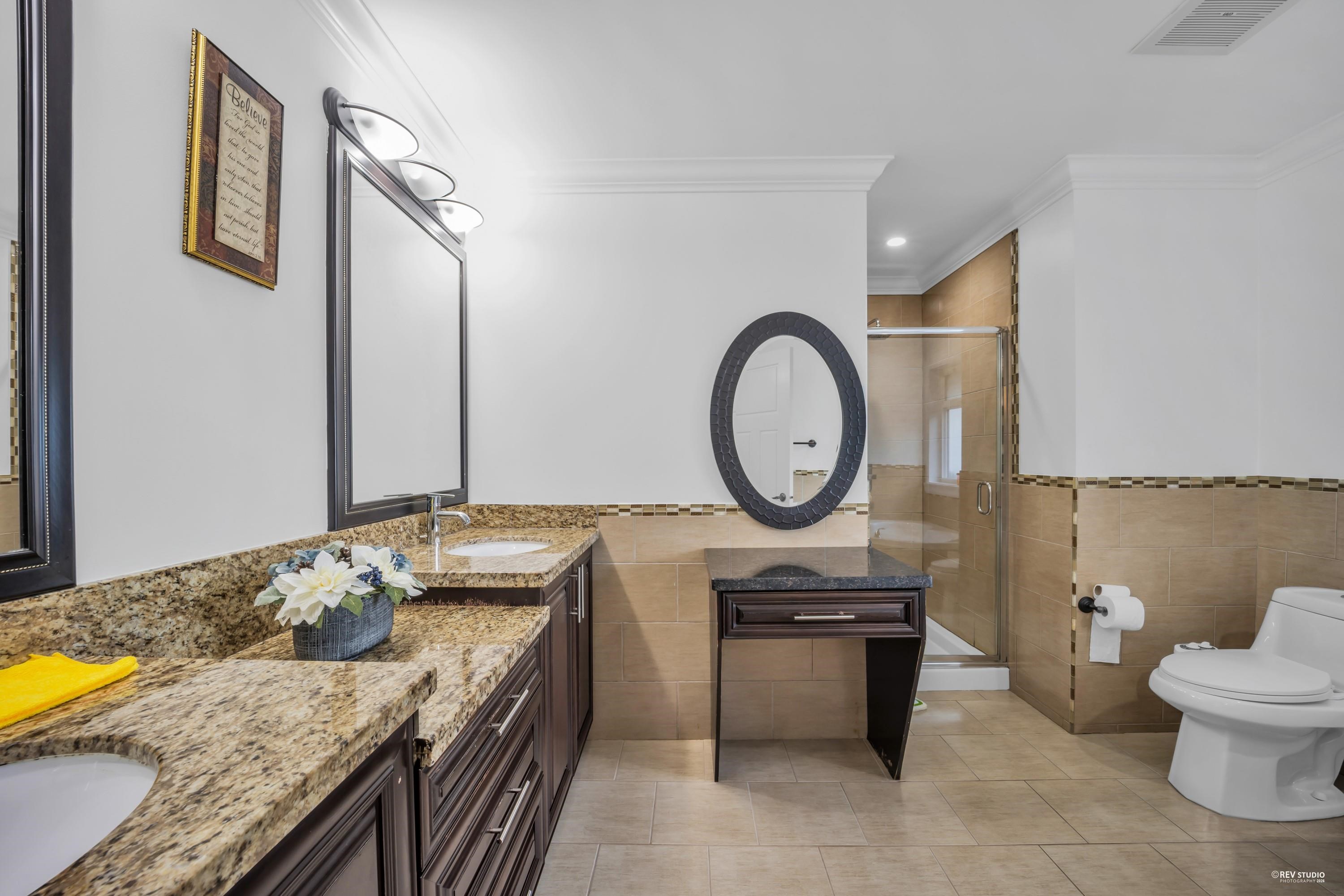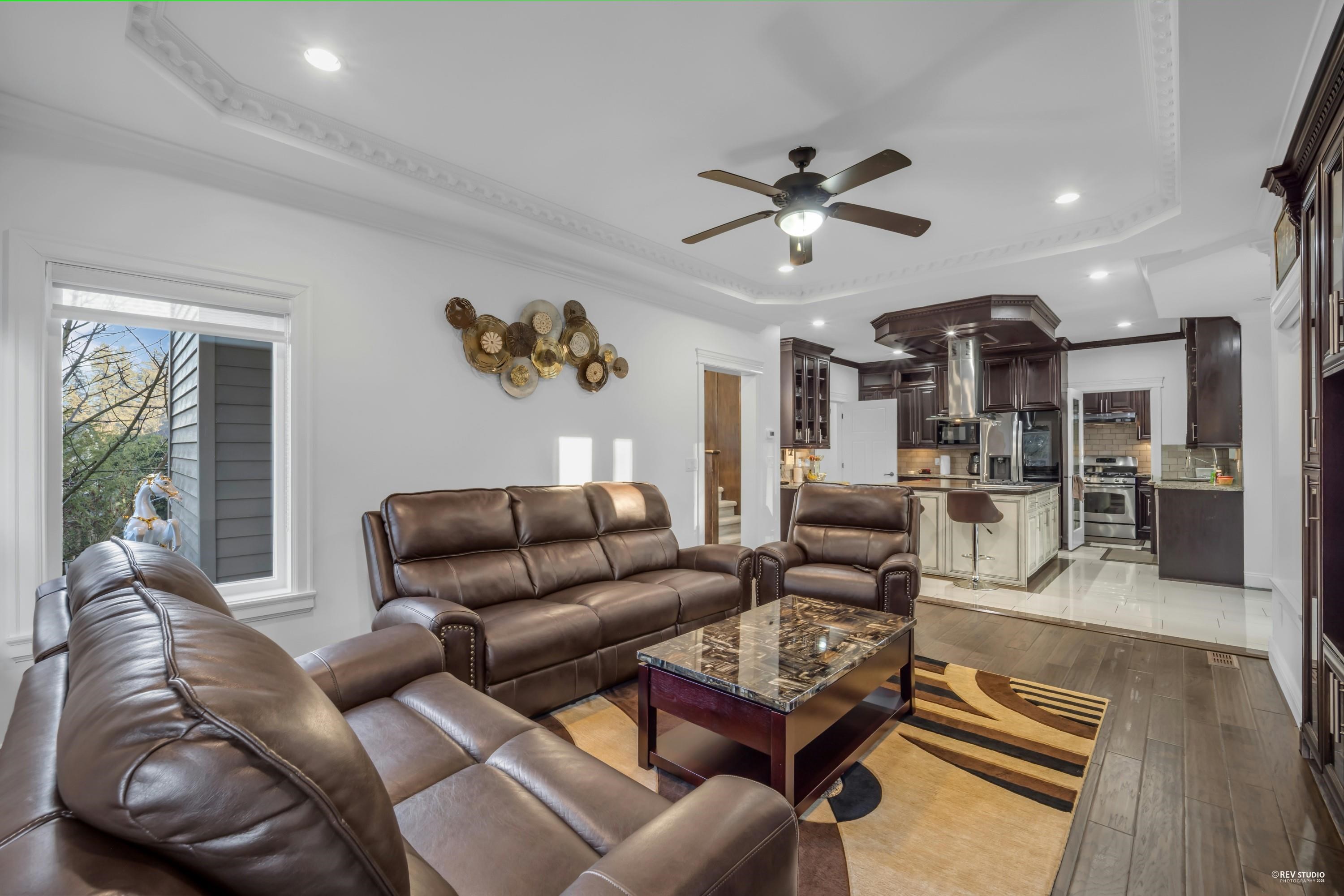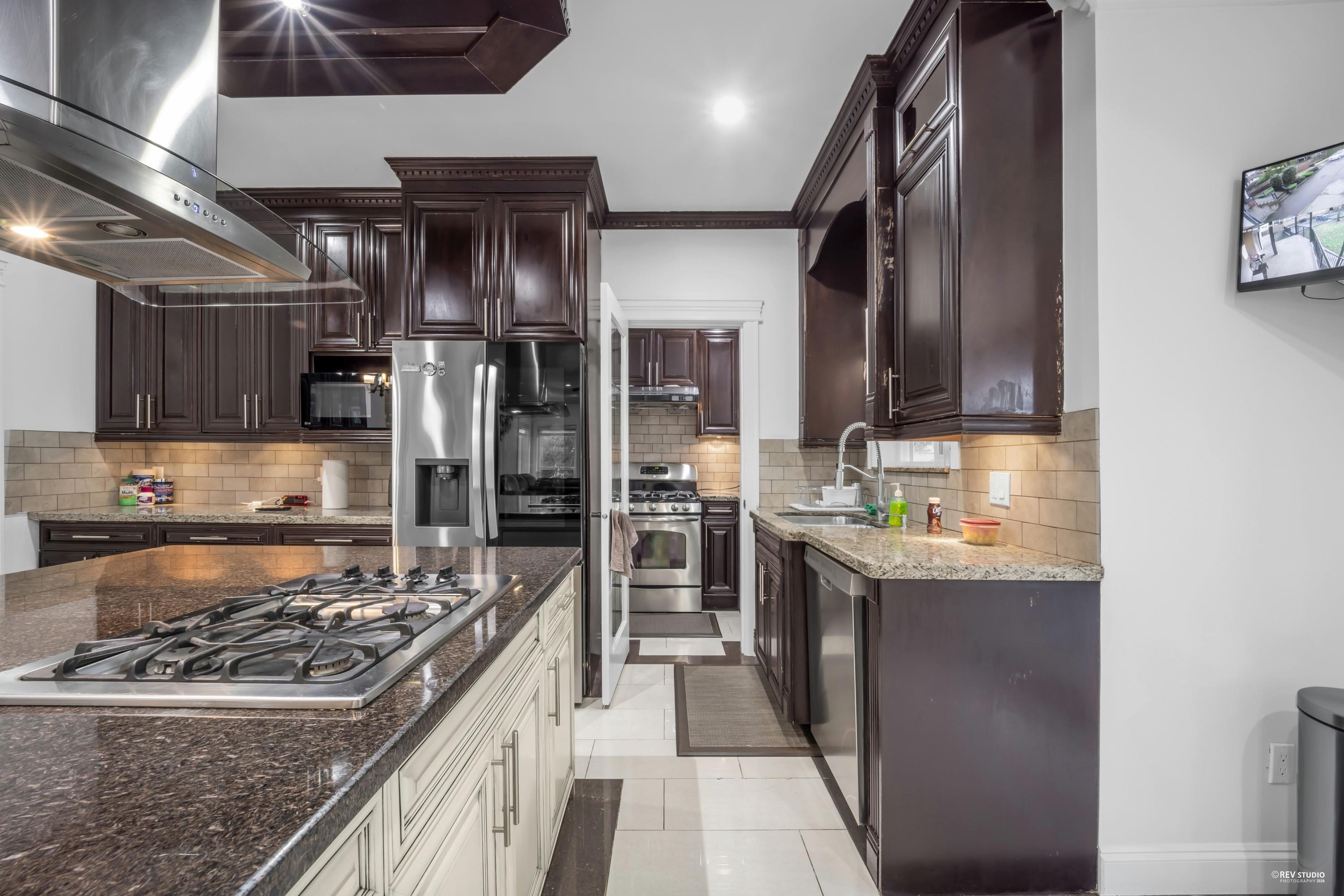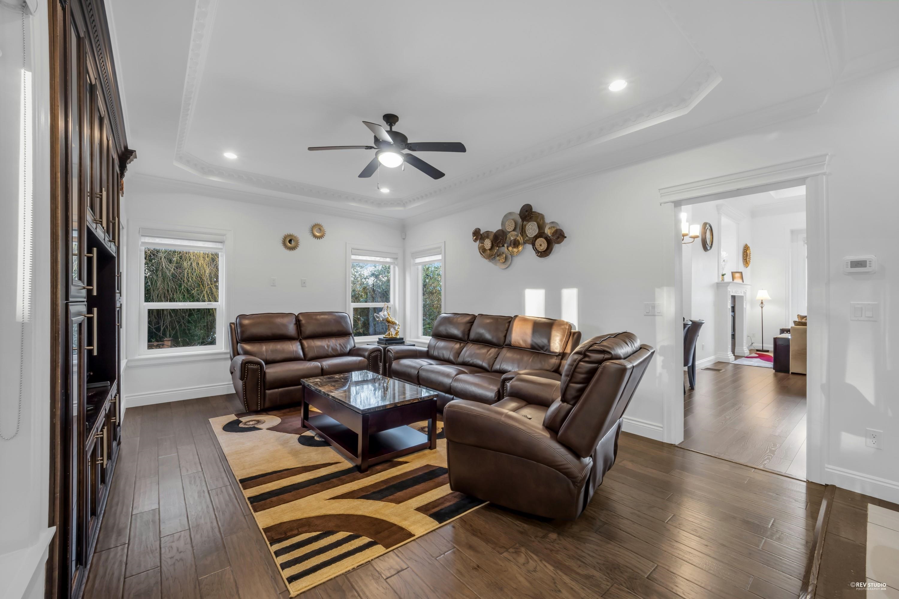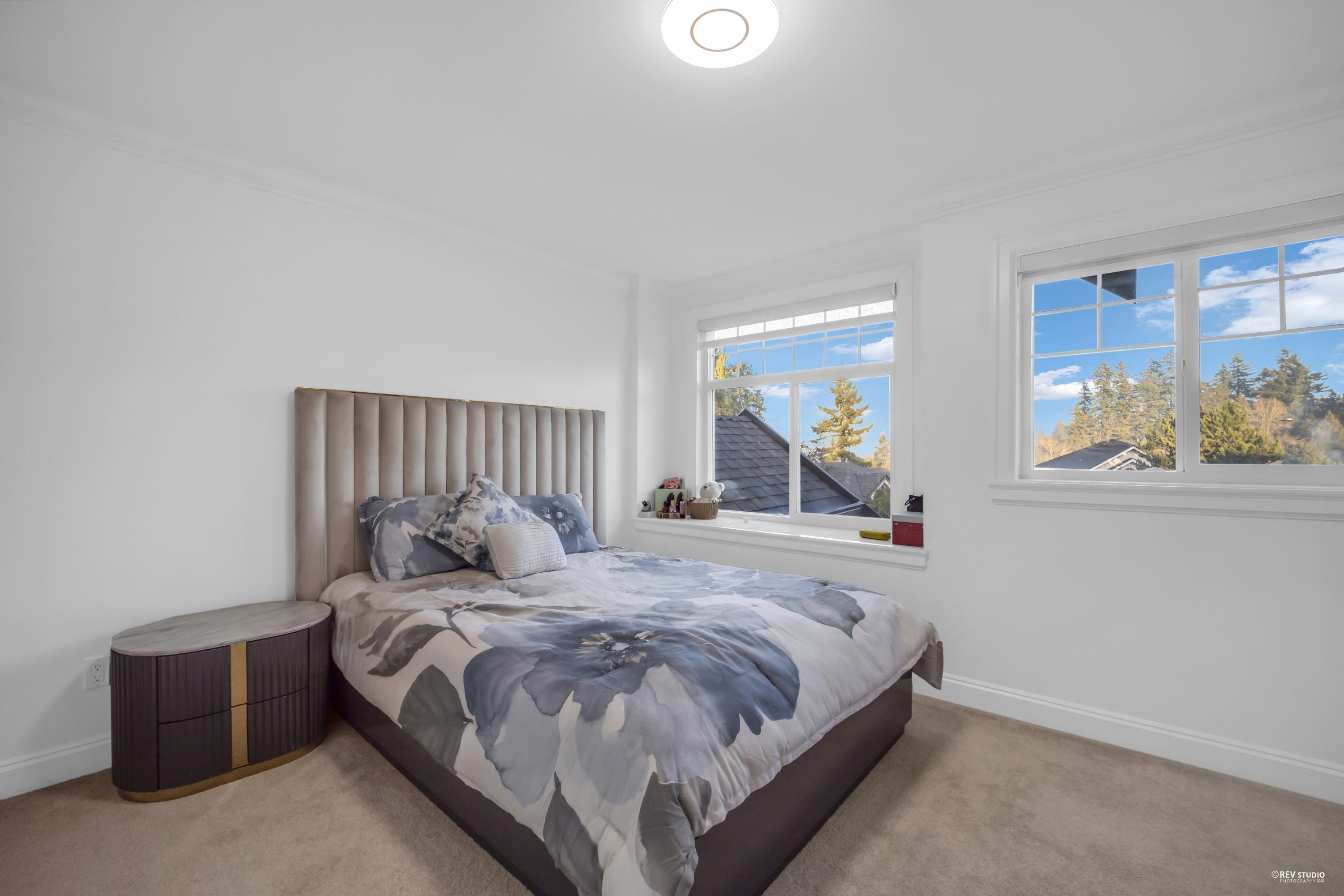 Beautifully kept custom-built home with breathtaking views of the Fraser River and Downtown New Westminster from the top floor. Situated on an approx. 6,029 sq. ft. lot, this home offers 8 bedrooms and 6 bathrooms with quality finishes throughout, including central air conditioning and granite countertops. The main floor features a theatre room with wet bar, bedroom, powder room, spice kitchen, and a covered patio with views. Upstairs boasts 4 spacious bedrooms, including a luxurious primary suite with ensu...