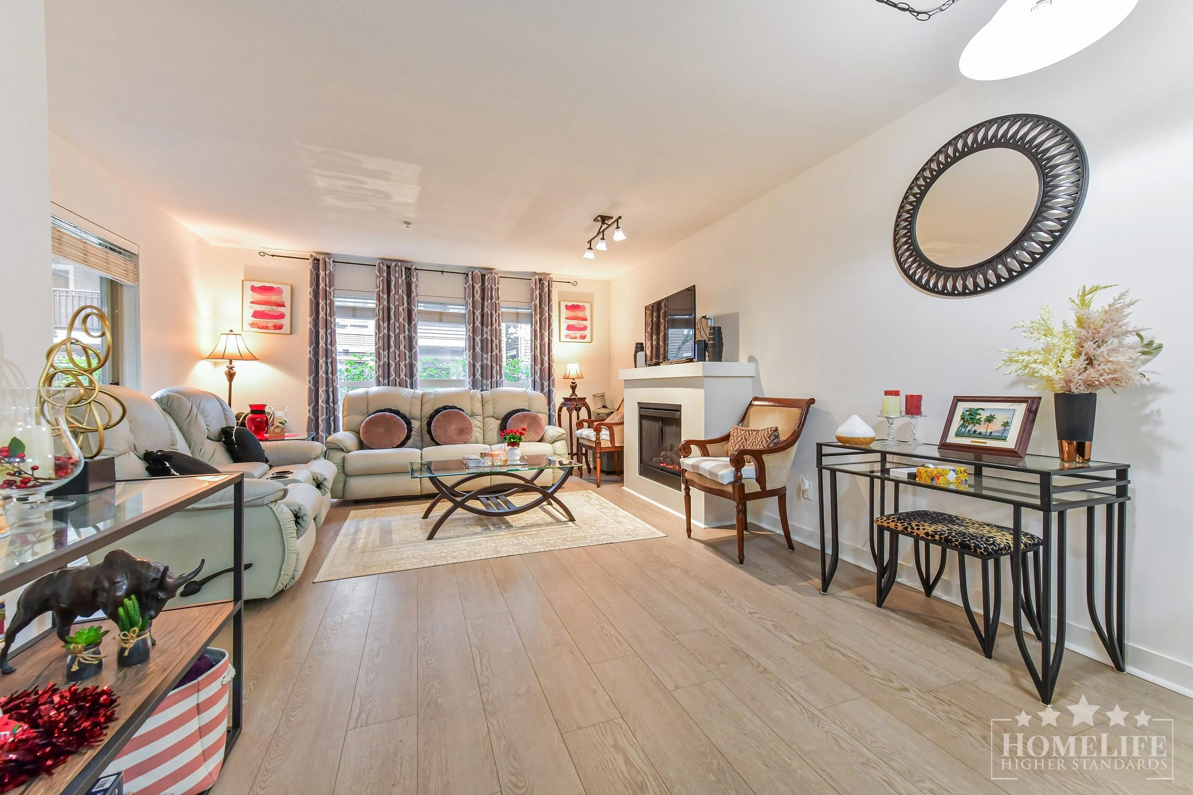 Charming 2 Bed 2 Bath + Den Ground Level Condo in Walnut Grove. Welcome to The Grove, a gated, landscaped, family-friendly community in the heart of Walnut Grove. Well managed complex w/ quiet residential setting, mature greenery, easy highway access & close to shops, transit & trails. Ground level unit w/ bright functional layout, 2 beds, 2 baths & versatile den. Large windows & direct private patio access. Modern kitchen w/ stainless steel appliances, in-suite laundry, quality cabinetry. Underground parki...