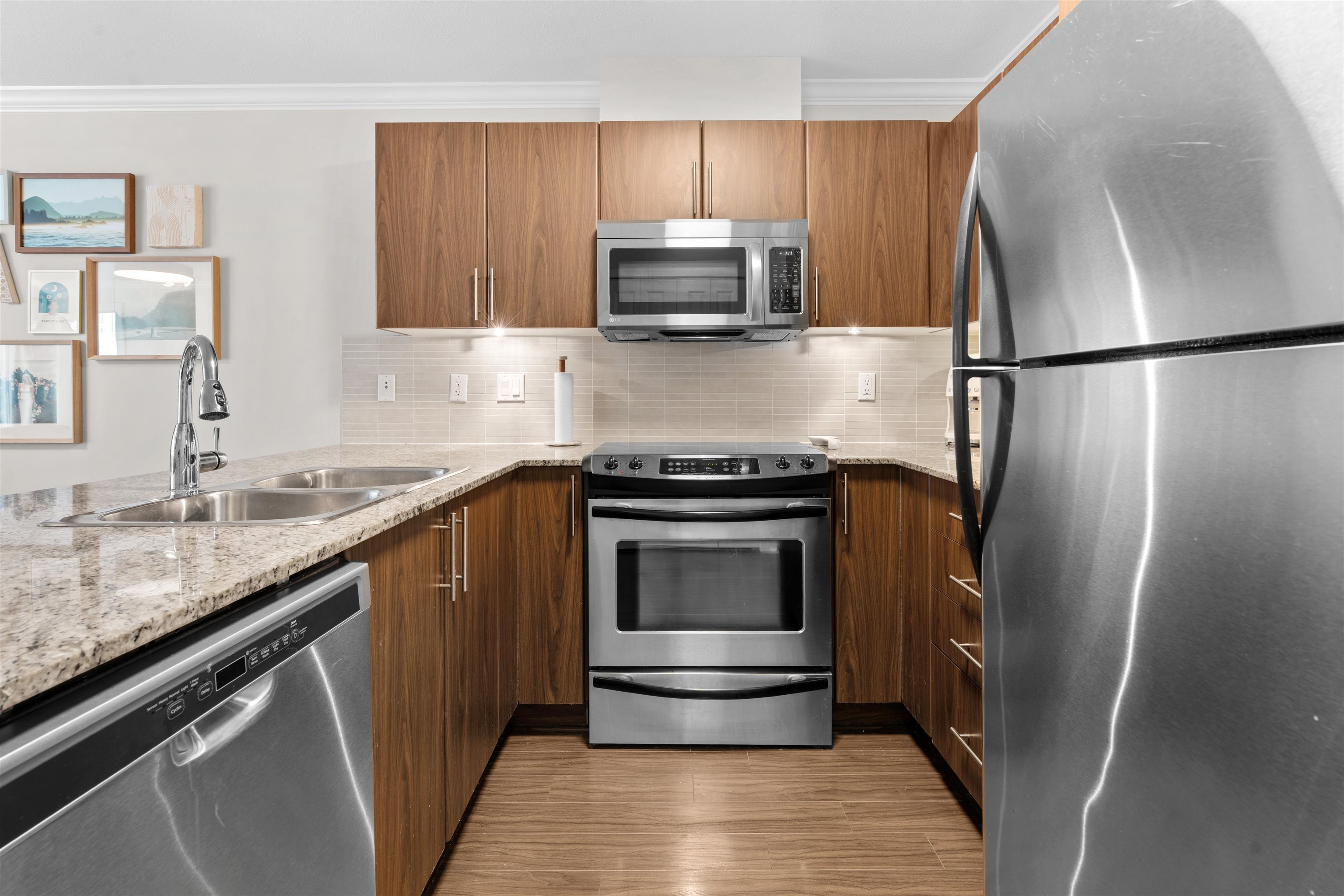 Welcome to The Grove in desirable Walnut Grove. This bright 722 sq ft 1 bed + den home features a spacious open layout with the living area set slightly apart from the dining space. The kitchen is finished with stainless steel appliances, granite counters, and a breakfast bar, plus a covered west facing balcony overlooking the quiet central courtyard, perfect for BBQs or unwinding after work. Includes 1 parking and 1 storage locker. Unbeatable location just off Hwy 1 with the walkbridge steps away to Fresh ...