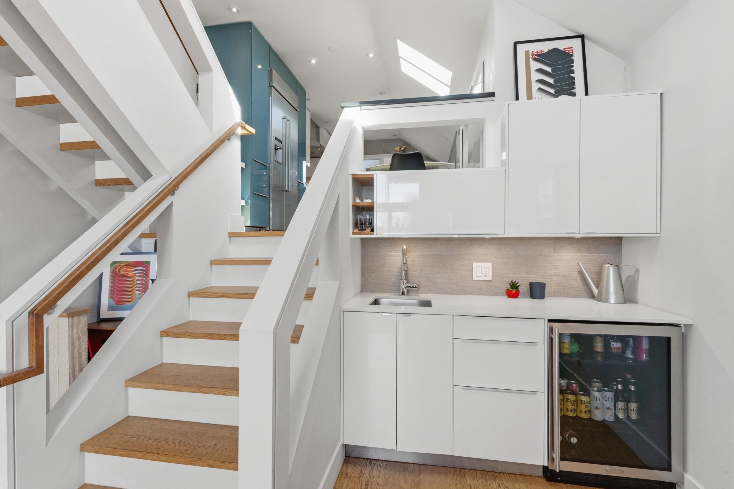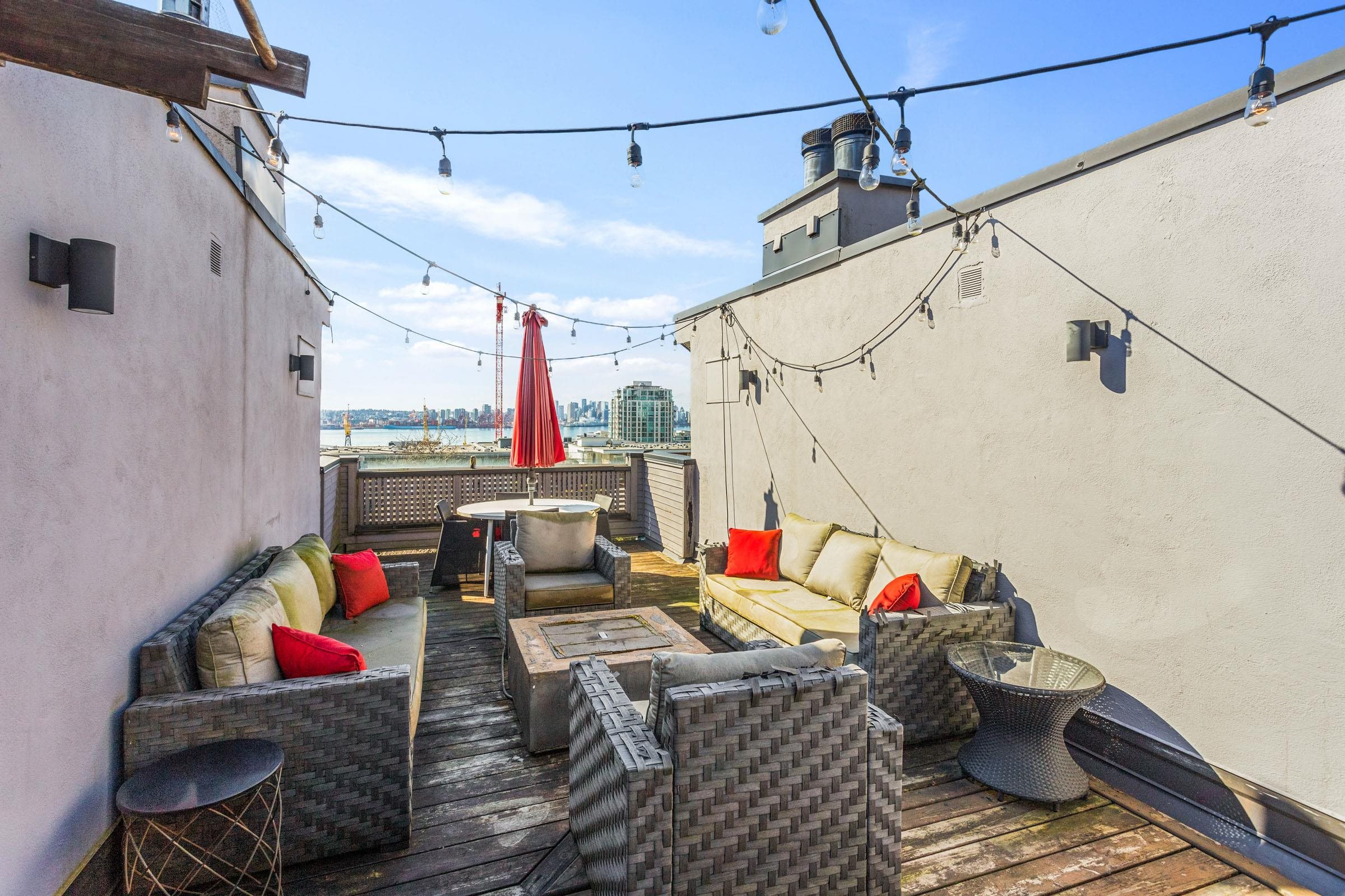 Welcome to one of lower Lonsdale's most unique homes, set on a highly sought after street. This beautifully renovated 2 bed, 2 bath townhome offers 1,331 sq ft. of stylish living. Enjoy 13' vaulted ceilings in the living room with wine fridge, large kitchen with high end appliances. Ocean views from both the living room and the bedroom. Nearly 400 sq ft. private rooftop patio offering breathtaking 180 degree views of the Ocean, City. and mountains, perfect for entertaining and relaxing. This boutique, s...