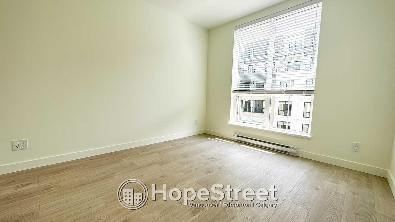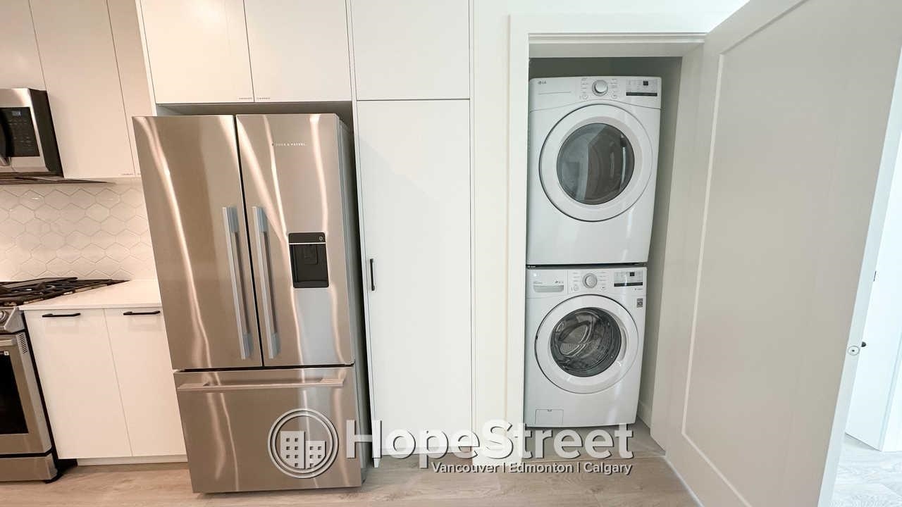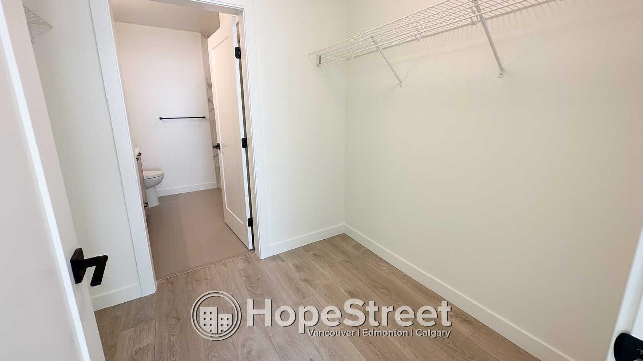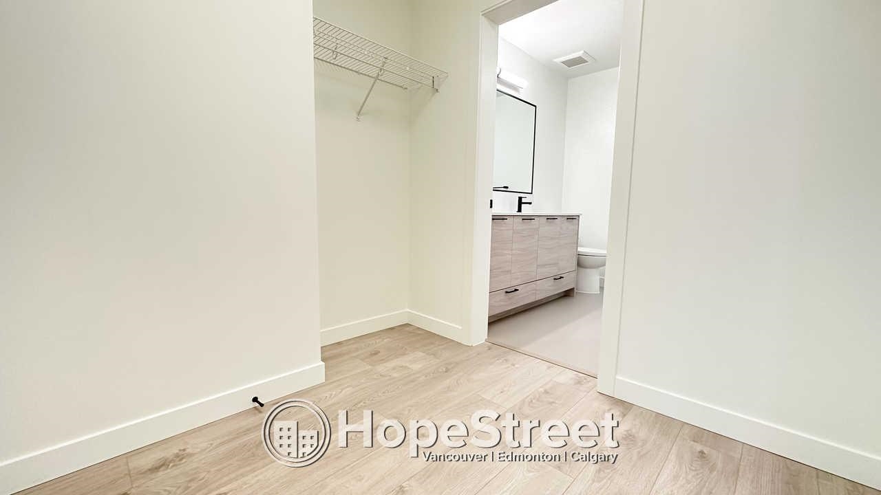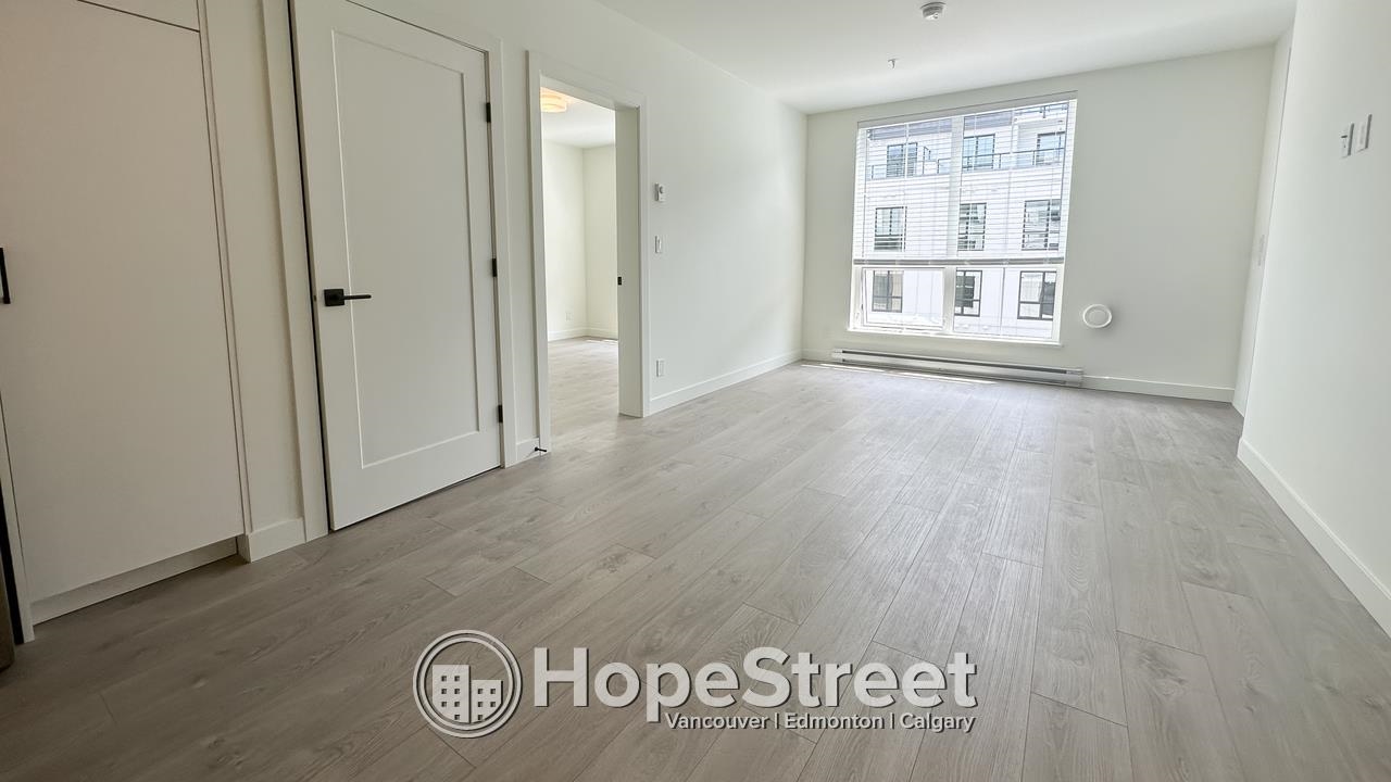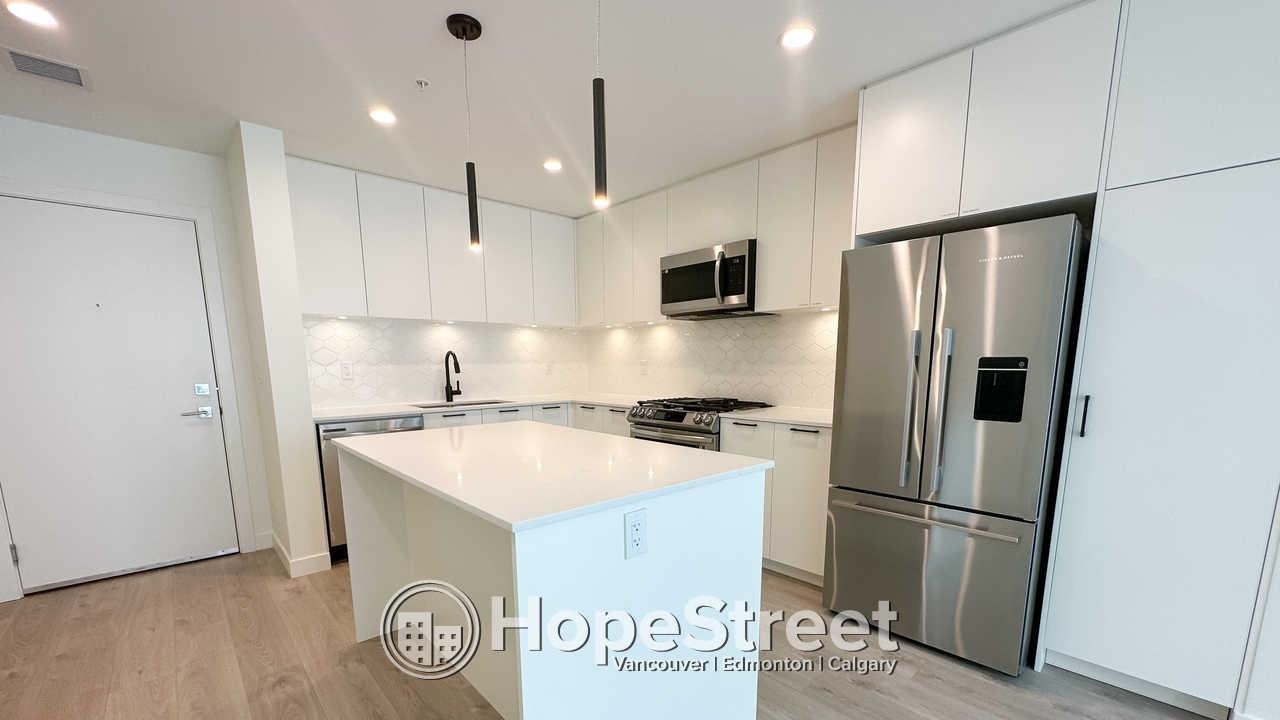This 926 sq. ft. home at Latimer Village offers a bright, open-concept layout with 9-foot ceilings and large windows that fill the space with natural light. The kitchen features quartz countertops, a central island, and upgraded appliances including a gas range. The primary bedroom includes a walk-through closet and a double-sink ensuite, while the second bedroom offers its own walk-in closet. Enjoy views of the green courtyard from the private balcony. Laminate flooring runs throughout, with in-suite laund...