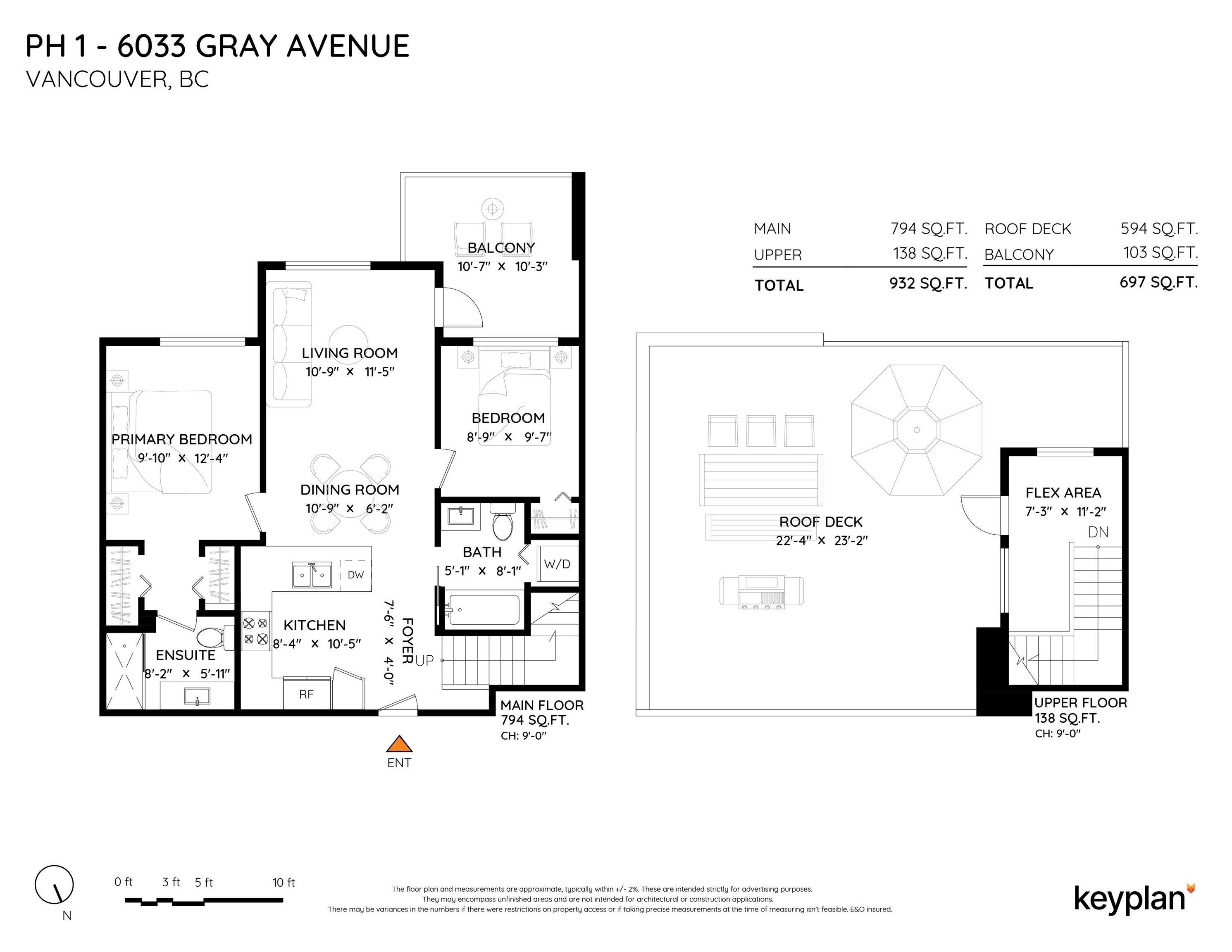 Penthouse at Prodigy built by award winning Adera. This bright south facing 2 BR 2 Bath unit boast 932 SF living space with 9 ft ceiling. This unit offers 103 SF balcony on main and a massive 594 SF roof top deck for your entertainment needs. Open kitchen with quartz countertops and modern cabinetry. Walking distance to UBC and all amenities such as groceries, shopping, dining, banking, and recreation. For the nature enthusiast you are just steps from Pacific Spirit Park. University Hill and Norma Rae Point...