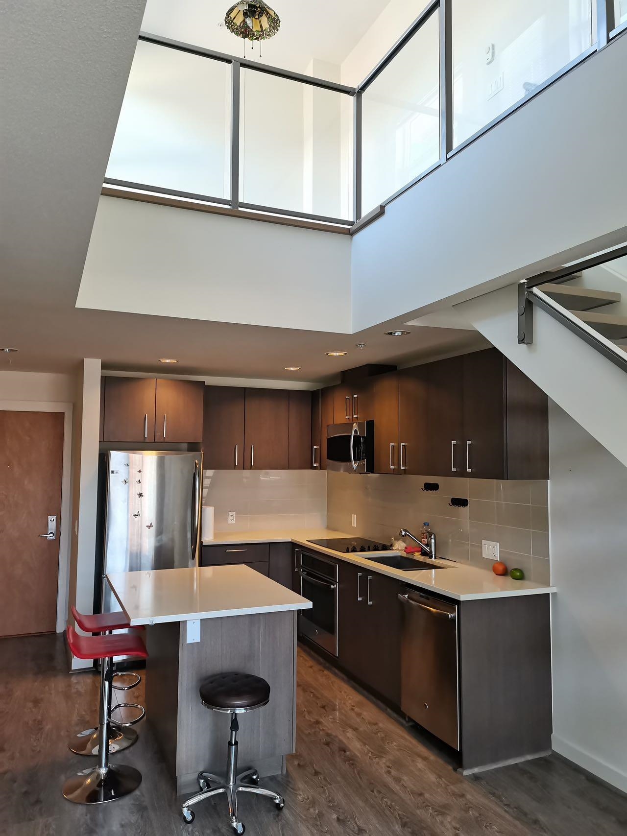 furnished penthouse, high ceiling, stainless appliances