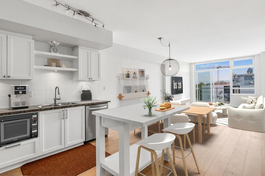 Rarely available penthouse at ‘The Vine’! Don’t miss out on this opportunity to own in a concrete building in the heart of Kitsilano. This TWO Bedroom, TWO Bathroom PLUS Office penthouse faces East with North East views across Kits to the downtown Mountain backdrop. Featuring Hunter Douglas blinds, hardwood floors, granite countertops, and stainless steel appliances. The suite has been meticulously maintained and has been freshly painted. Comes with the added bonus of TWO parking stalls and a Den/Storage ro...