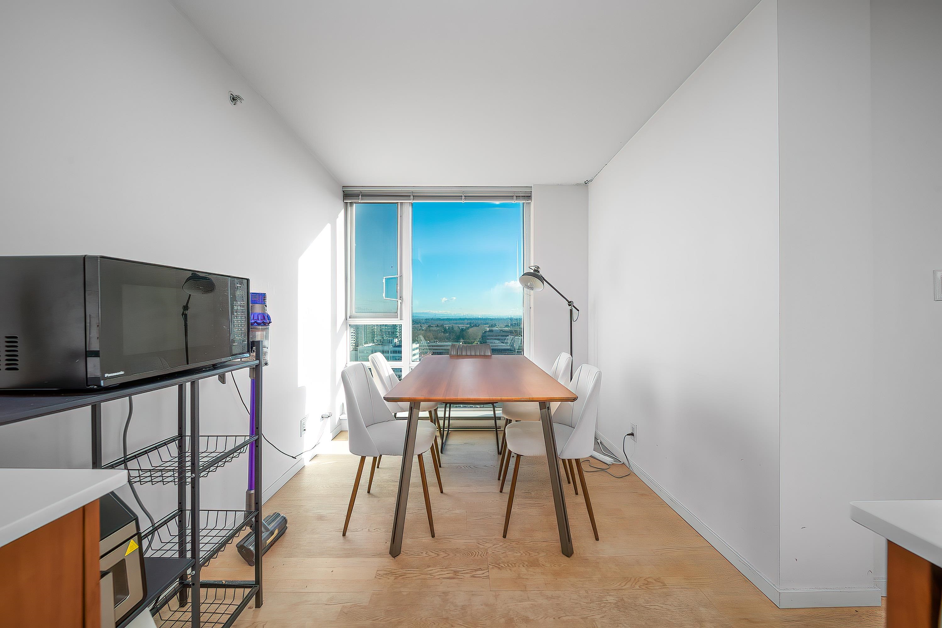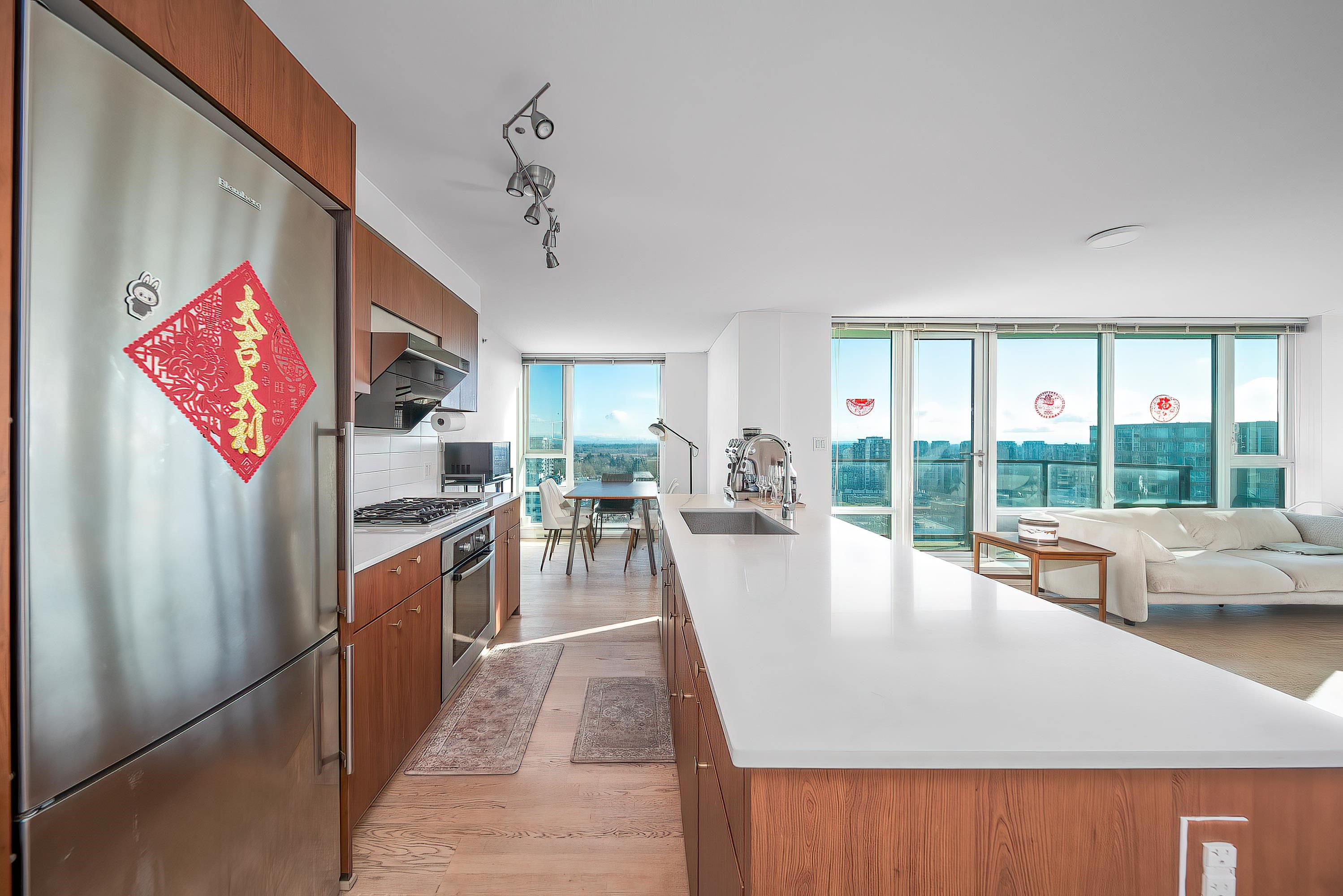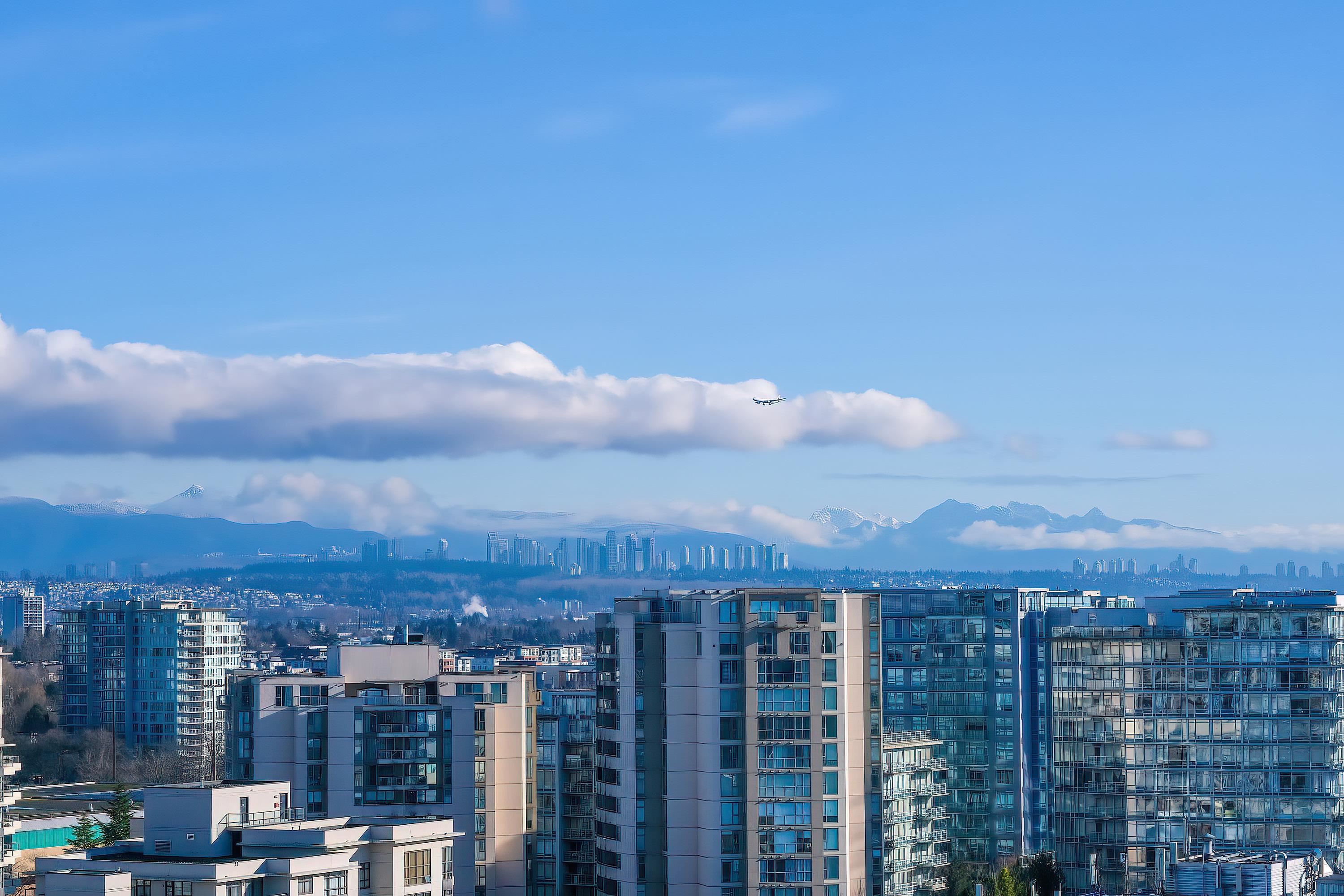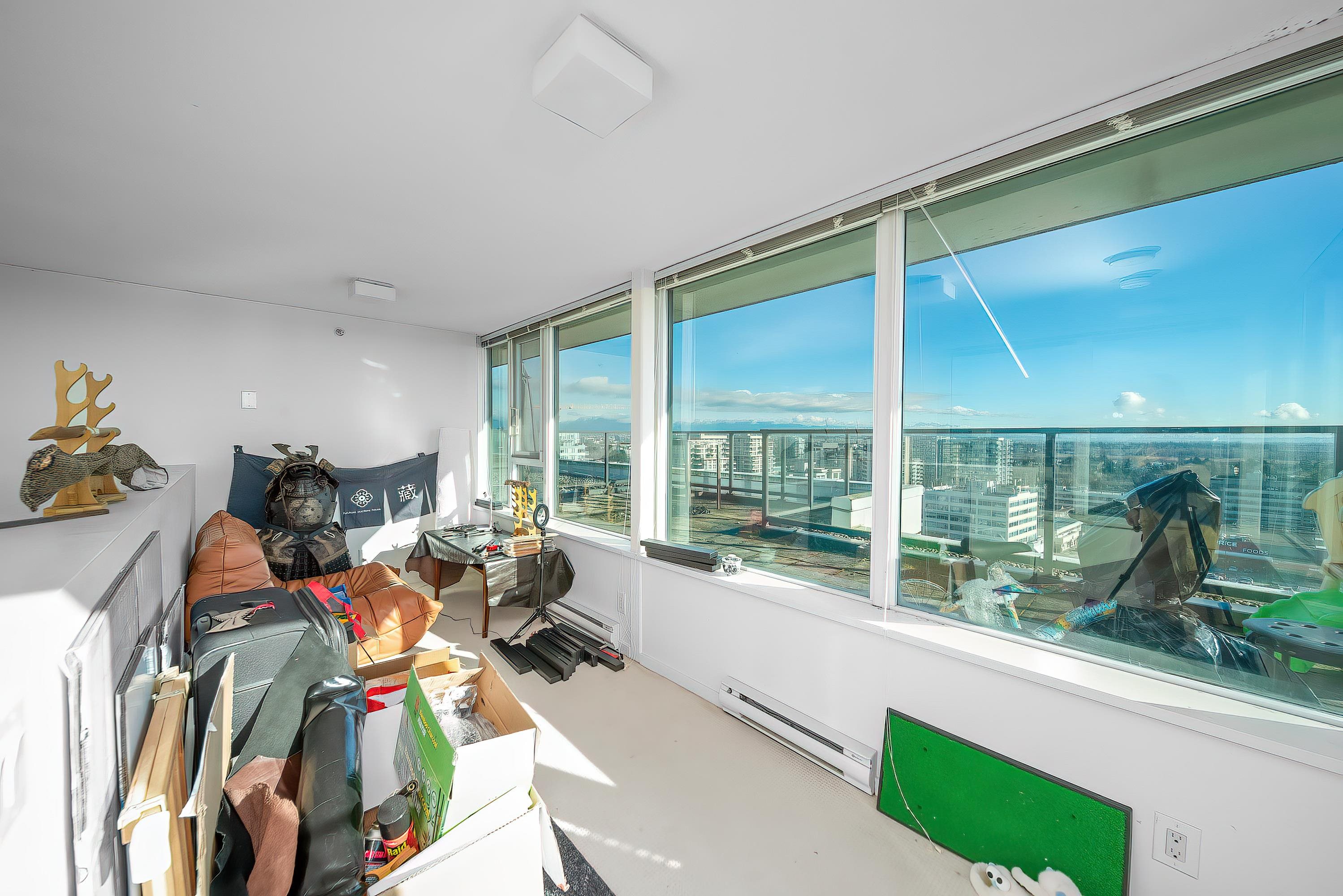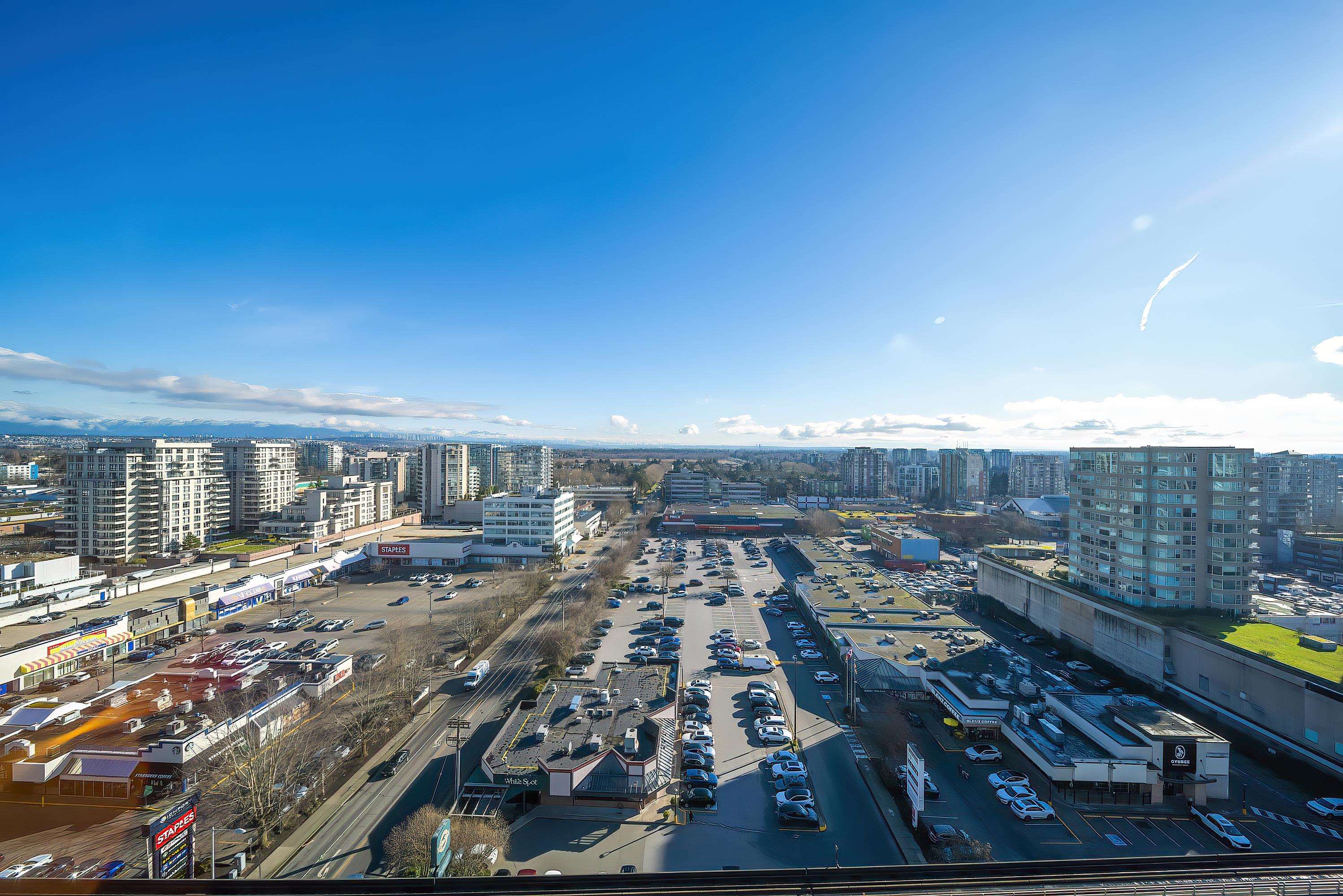PENTHOUSE LIVING in the heart of Richmond! Amazing two bedrooms plus den. Two-level South-East Corner Unit Penthouse at Quintet Tower A! Two and a half bathroom. Main level balcony and upper-level huge patio total 530sqft. 270-degree views with mountain and city. Fantastic and reasonable floor plan with well-managed complex. High-end extra-large kitchen with steel appliances and plenty of cupboard space, BOSCH stainless appliances, gas cooktop, quartz counters, AIR CONDITIONING. Amenities include 75' indoor...